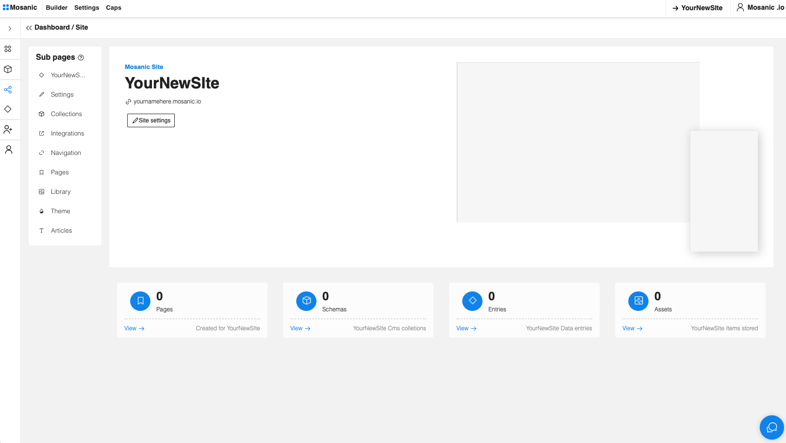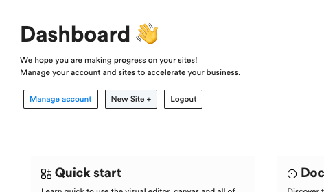 > The top nav, from here you can go to the builder, select one of your sites and acces your account.