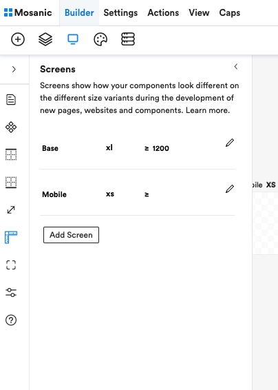 The page canvas is what get's loaded by default when you open the builder. It's the foundation of each Mosanic page and since we live in a almost Mobile First time digital age, it displays a Mobile and Large desktop overview of your design.